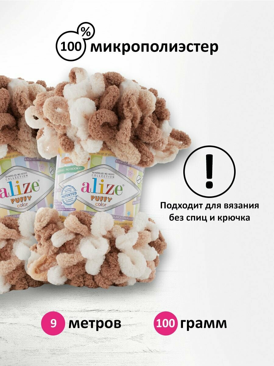 Пряжа Puffy Color Alize (5865), 100г, 9м, 100% микрополиэстер (2 шт.)