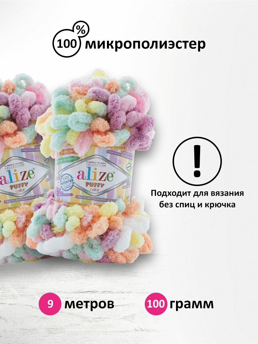 Пряжа Puffy Color Alize (5865), 100г, 9м, 100% микрополиэстер (2 шт.)