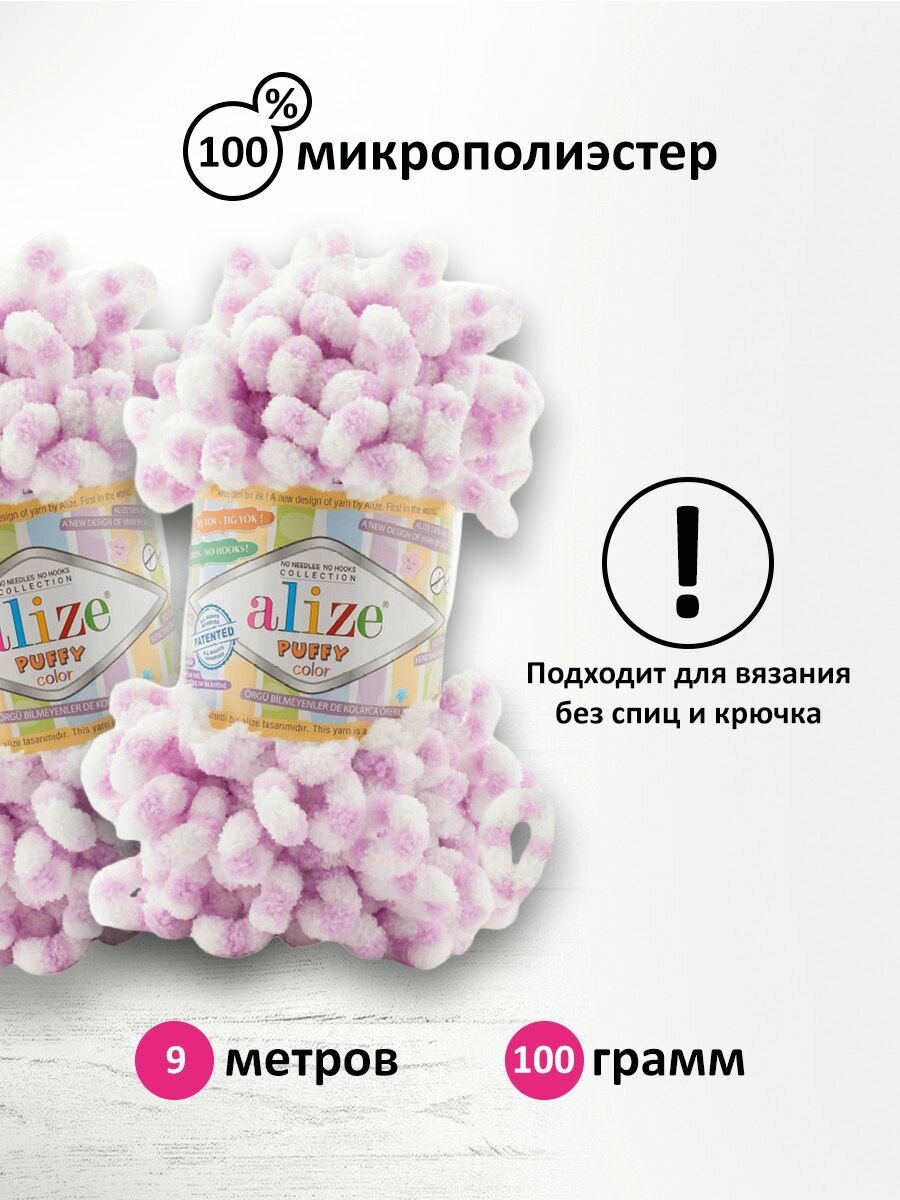 Пряжа PUFFY COLOR (Alize), розово-белый - 5863, 100% микрополиэстер, 5 мотков, 100 г, 9 м. 1 441 ₽