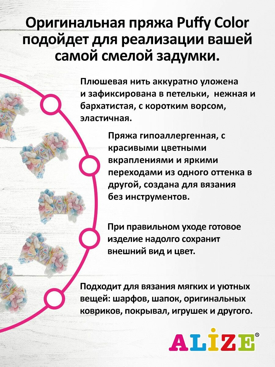 Пряжа для вязания Alize puffy color 100 г 9 м микрополиэстер плюшевая мягкая 6395 секционный 5 мотков 3 860 ₽