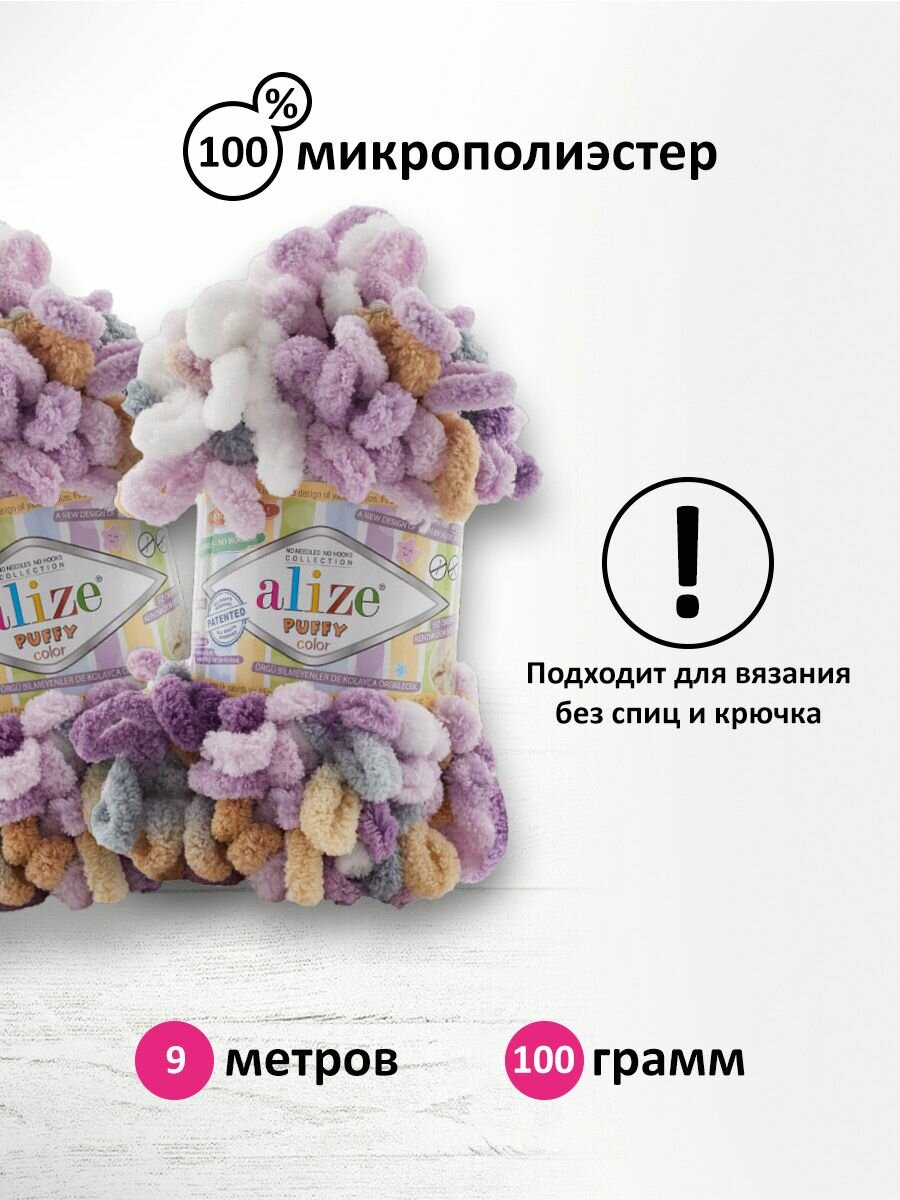 Пряжа Puffy Color Alize (5865), 100г, 9м, 100% микрополиэстер (2 шт.)