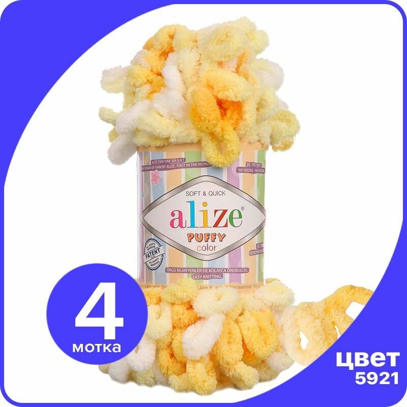 Пряжа PUFFY COLOR (Alize), канарейка принт - 5921, 100% микрополиэстер, 5 мотков, 100 г., 9 м.