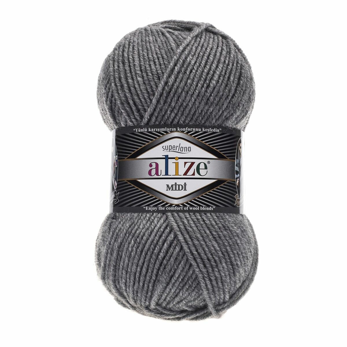 Пряжа Alize Superlana Midi антрацитовый меланж (800), 25%шерсть/75%акрил, 170м, 100г, 1шт