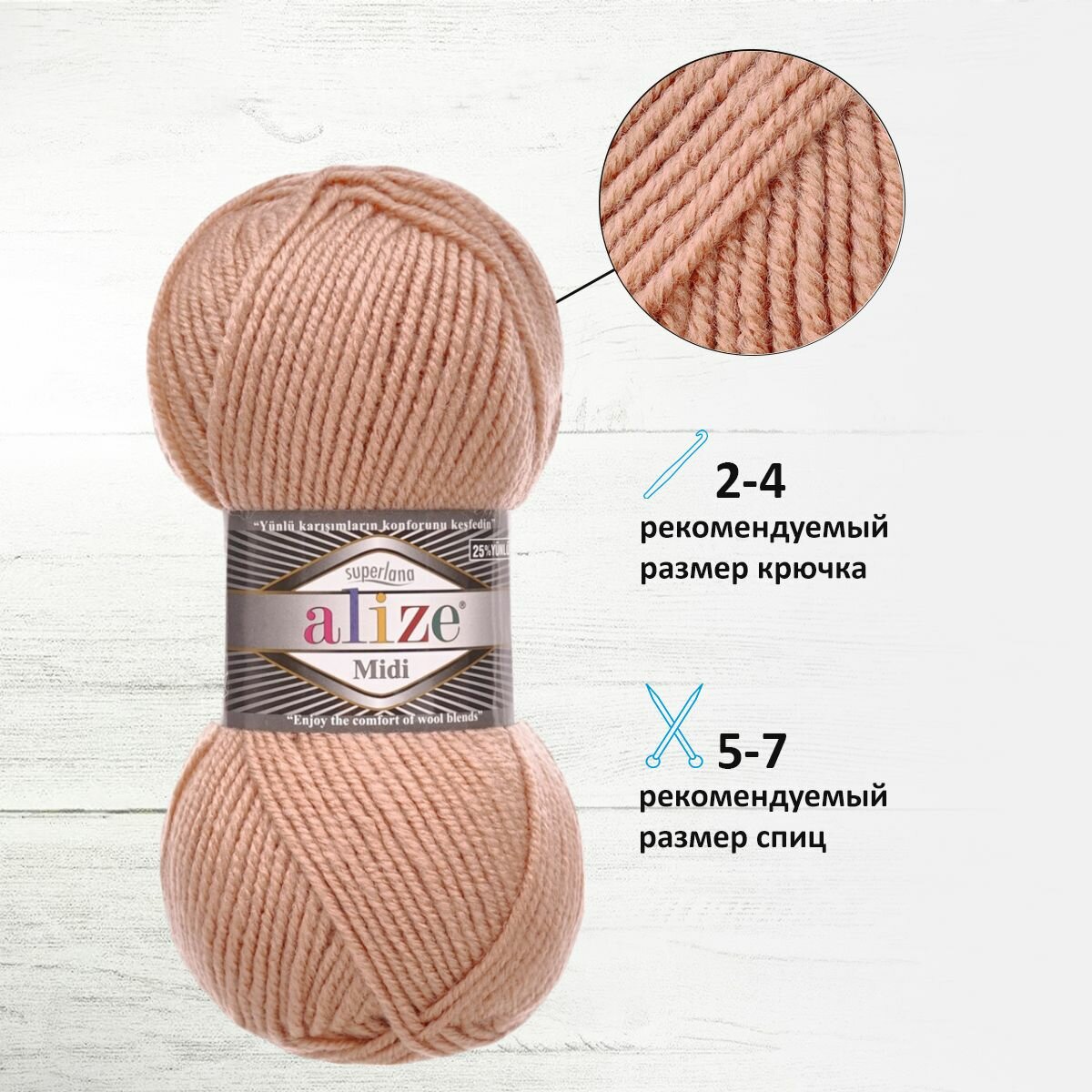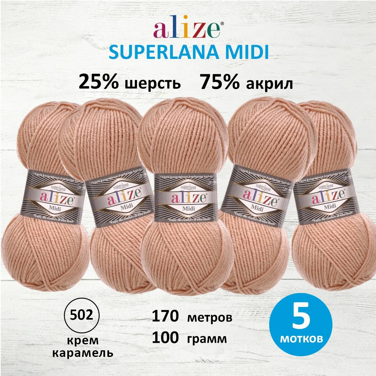10 цен на Пряжа Alize Superlana Midi карамель (502), 25%шерсть/75%акрил, 170м, 100г, 5шт