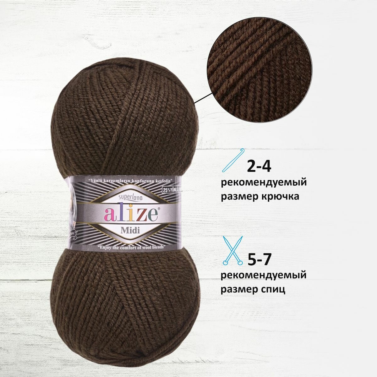 Отзывы на Пряжа Alize Superlana Midi коричневывй (26), 25%шерсть/75%акрил, 170м, 100г, 5шт