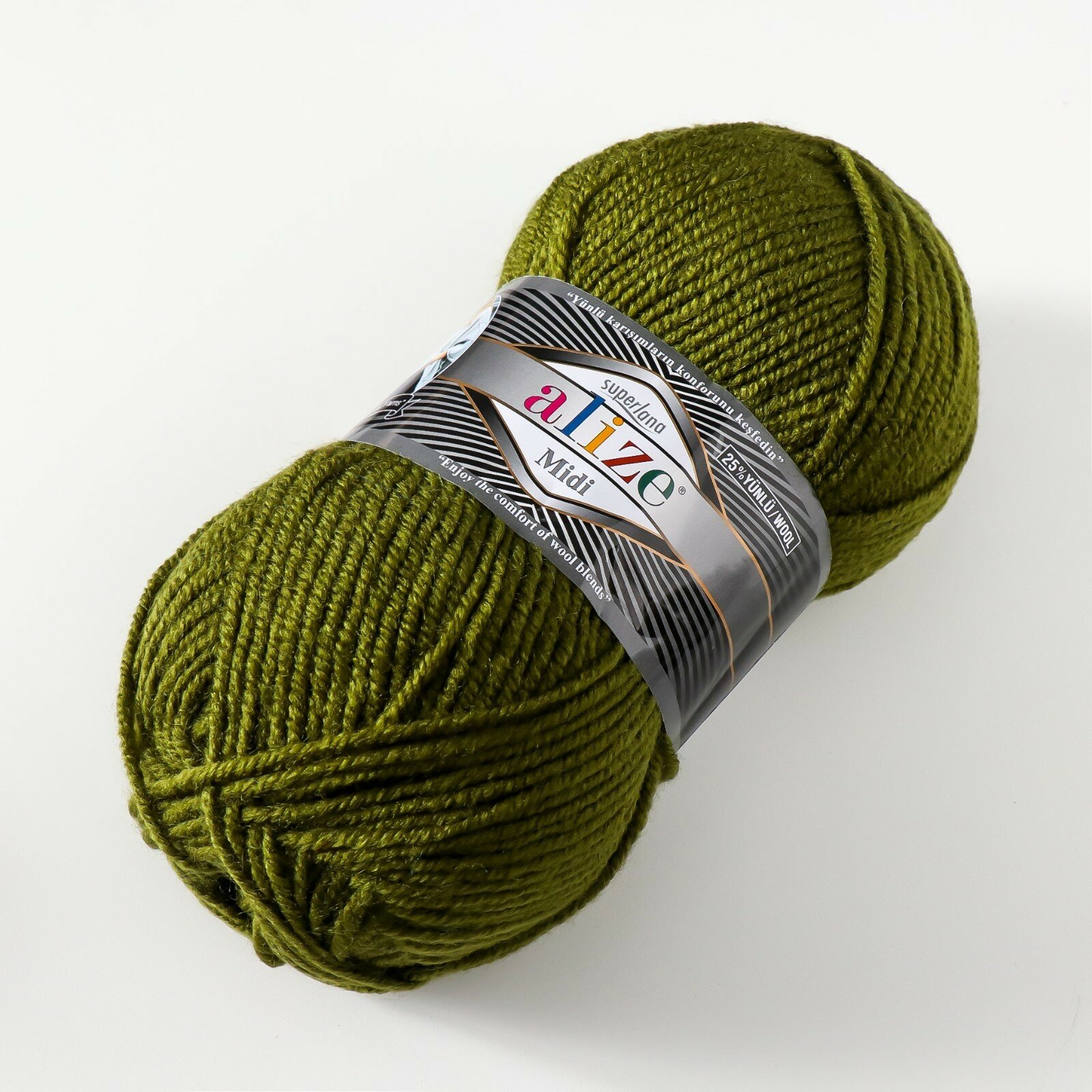 Пряжа ALIZE SUPERLANA MIDI, оливковый - 620, 25% шерсть, 75% акрил, 5 мотков, 100 г, 170 м.