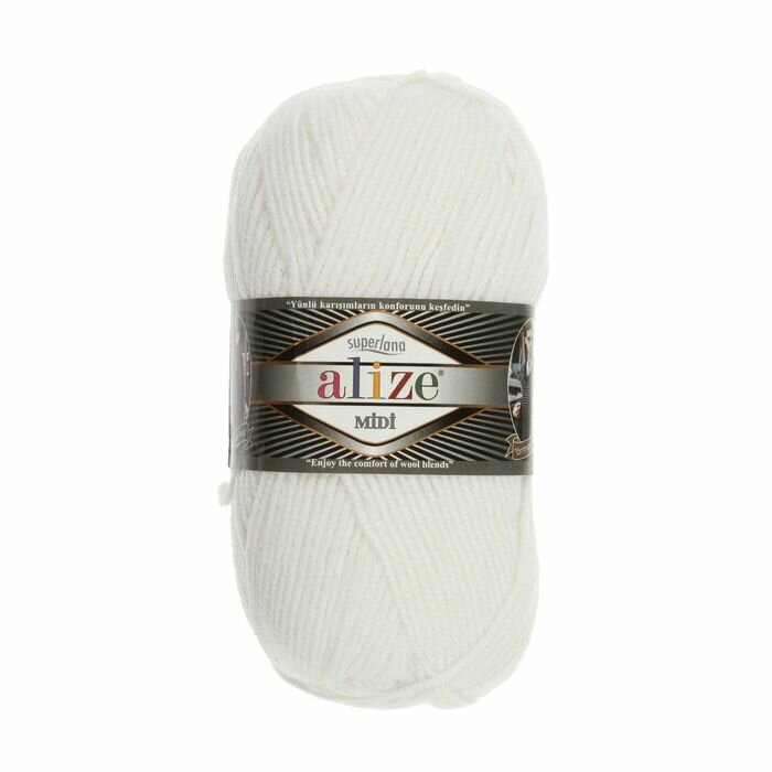 Пряжа Alize Superlana midi (Ализе Суперлана миди) - 1 моток 55 Белый, 75% акрил 25% шерсть, 170м/100г информация: