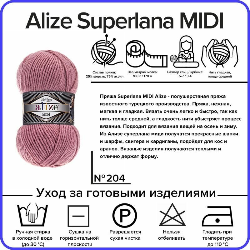 Пряжа Alize Superlana MIDI - розовый (204) - 3 шт (Ализе Суперлана миди) информация: