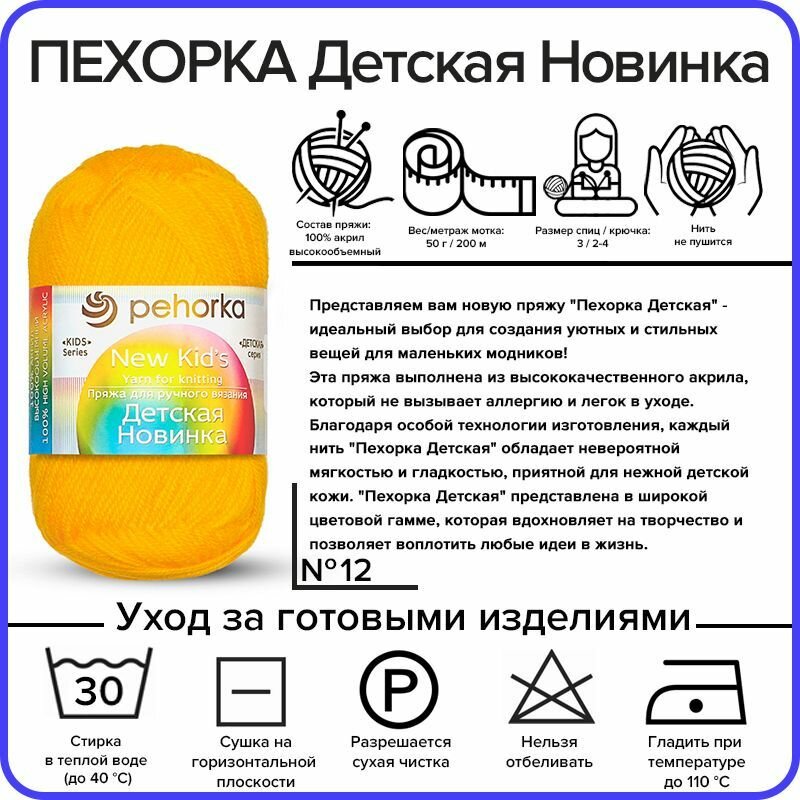 Пряжа для вязания Пехорка Детская Новинка - Желток (12), 50гр / 200м (100% акрил) - 2 шт информация: