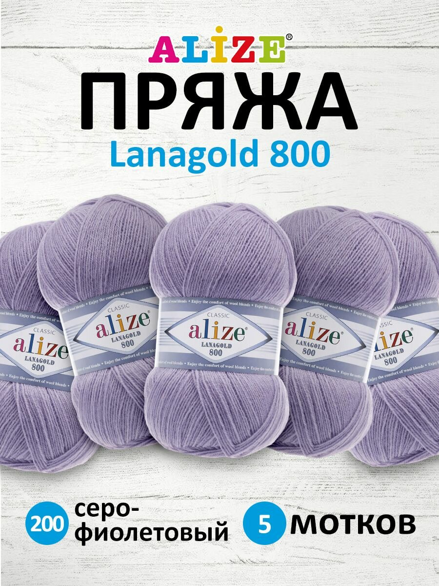 Пряжа Alize Lanagold 800 сиреневый (166), 51%акрил/49%шерсть, 800м, 100г, 5шт