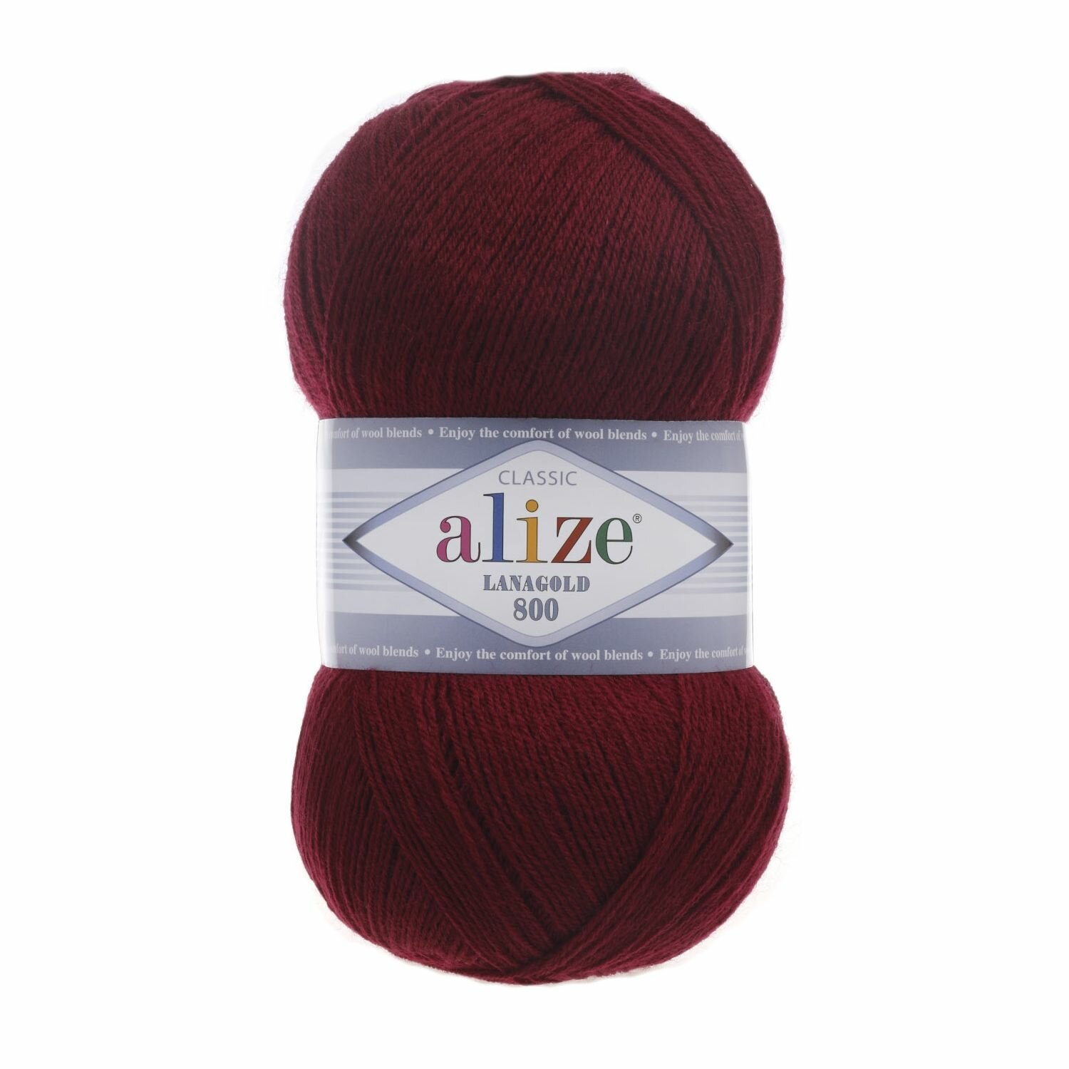 10 цен на Пряжа Alize Lanagold 800 (Ланаголд 800) - 5 мотков Цвет: 57 бордовый (Ланаголд 800) 49% шерсть, 51% акрил 100г 730м