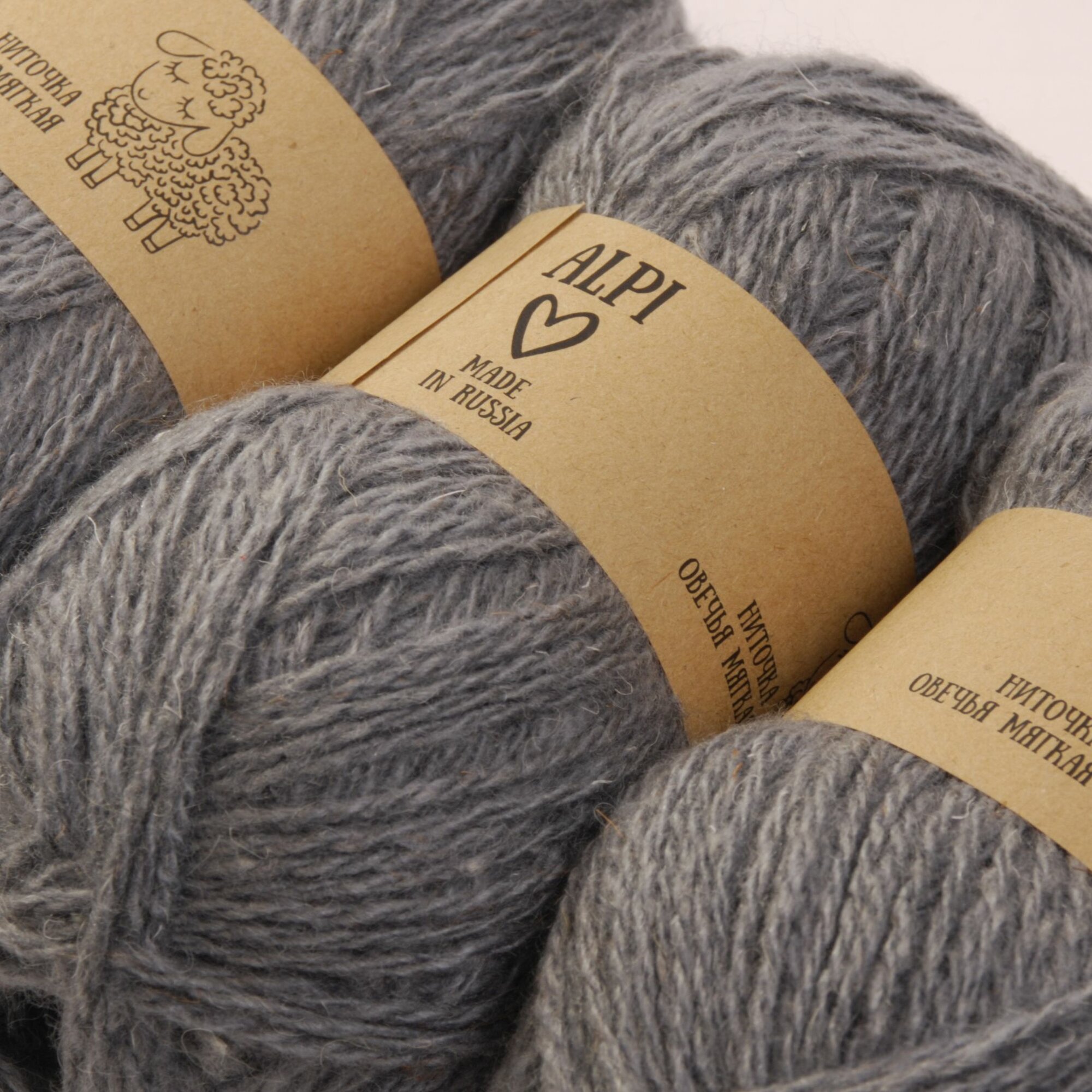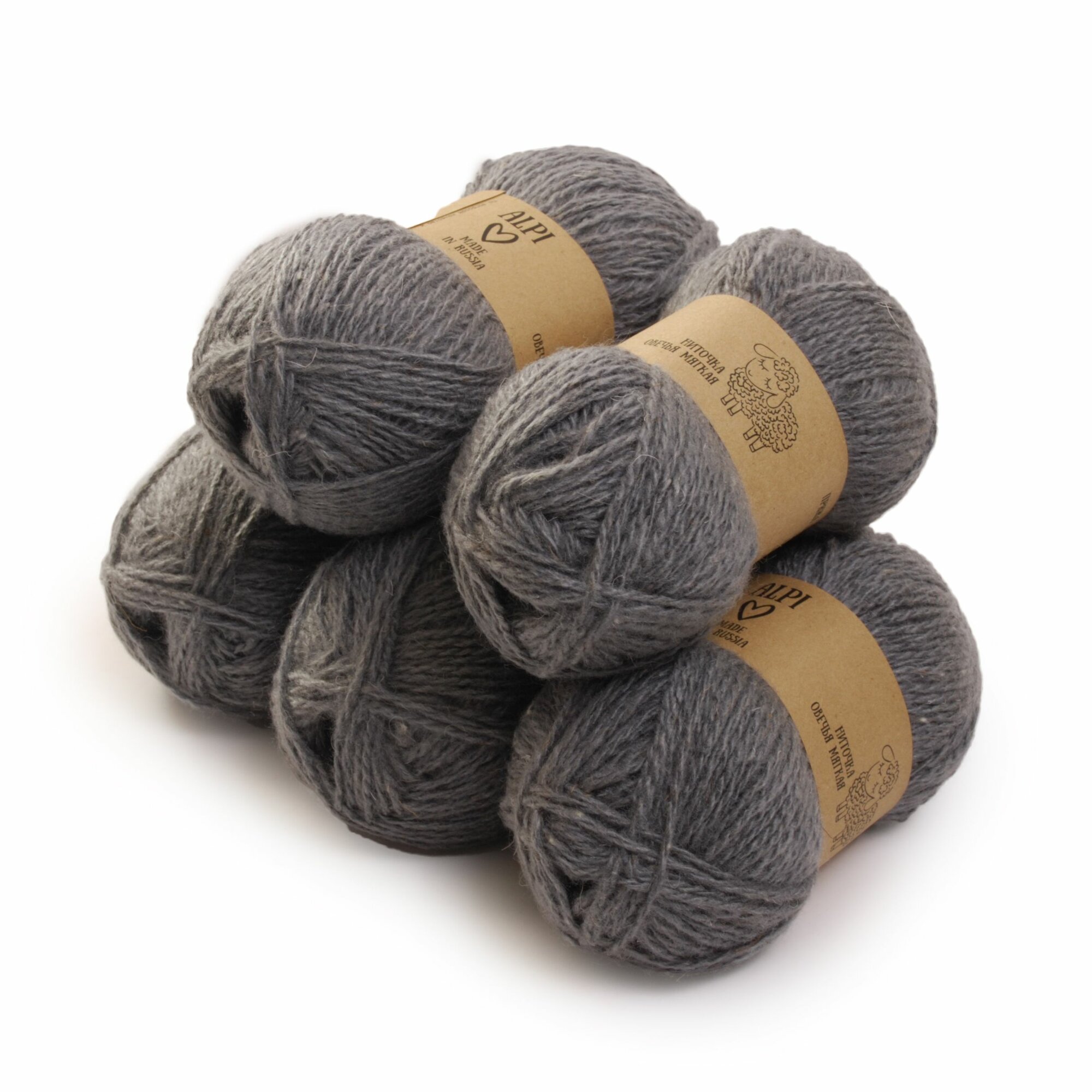 Пряжа для вязания ALPI "Овечья мягкая", 70% шерсть, 30% акрил, 100 г/250 м, серый, 5 мотков
