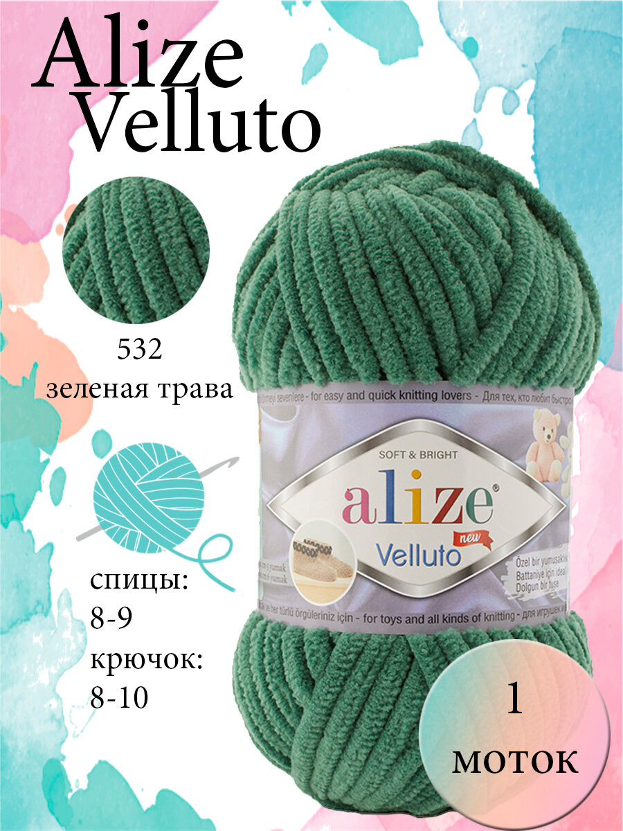 10 цен на Пряжа Alize Velluto 532 зеленая трава