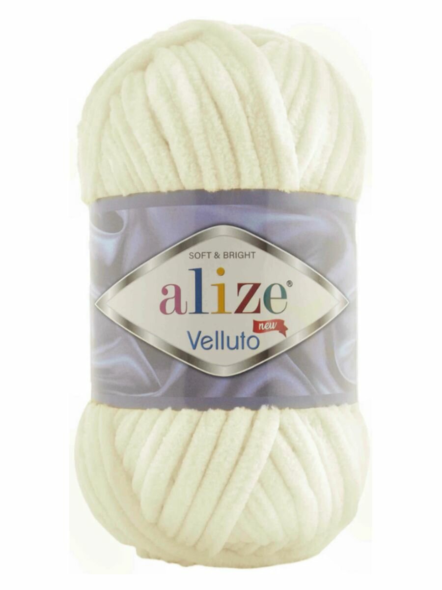 10 цен на Пряжа для вязания ALIZE VELLUTO Ализе Веллюто: 62 (молочный), 3 шт 68 м 100 г, 100% микрополиэстер