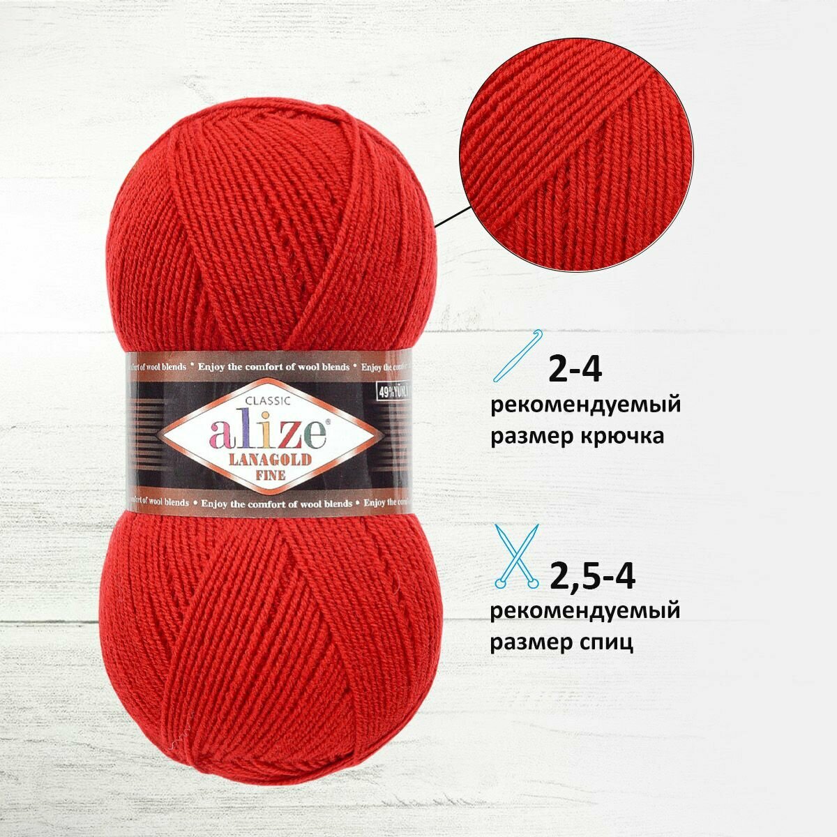 Отзывы на Пряжа ALIZE LANAGOLD FINE, красный - 56, 49% шерсть, 51% акрил, 5 мотков, 100 г., 390 м.