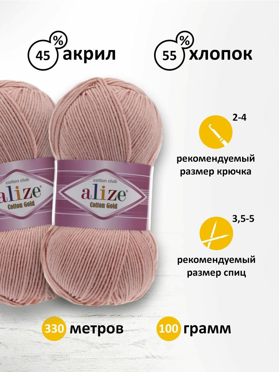 10 цен на Пряжа для вязания ALIZE 'Cotton gold', 100г, 330м (55% хлопок, 45% акрил), ТУ (161 пудра), 5 мотков
