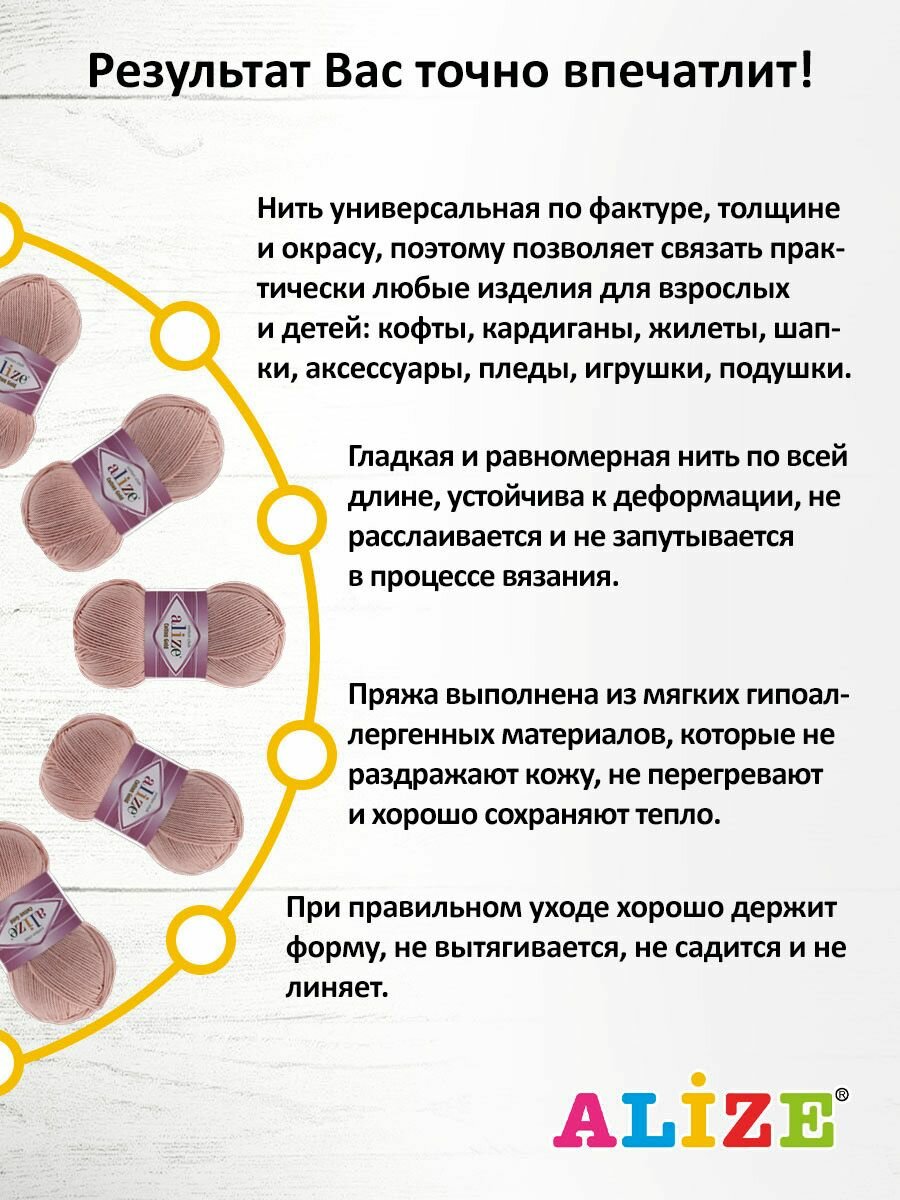 Отзывы на Пряжа для вязания ALIZE 'Cotton gold', 100г, 330м (55% хлопок, 45% акрил), ТУ (161 пудра), 5 мотков