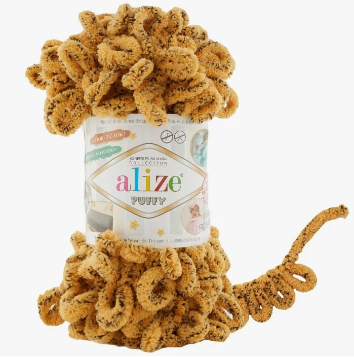 Пряжа Alize Puffy Fine -1 шт, 160 медовый, 14 м/100 г, маленькие петли (2 см) /Ализе Пуффи файн/