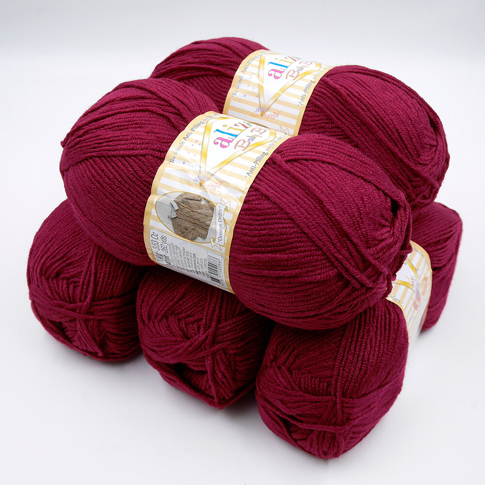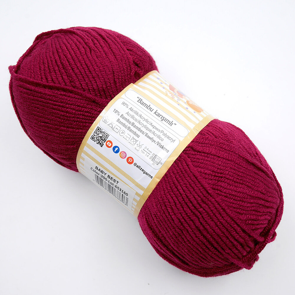 Пряжа для вязания Alize 'Baby Best', 100г, 240м (10% бамбук, 90% акрил), с эффектом антипиллинг (390 вишневый), 5 мотков