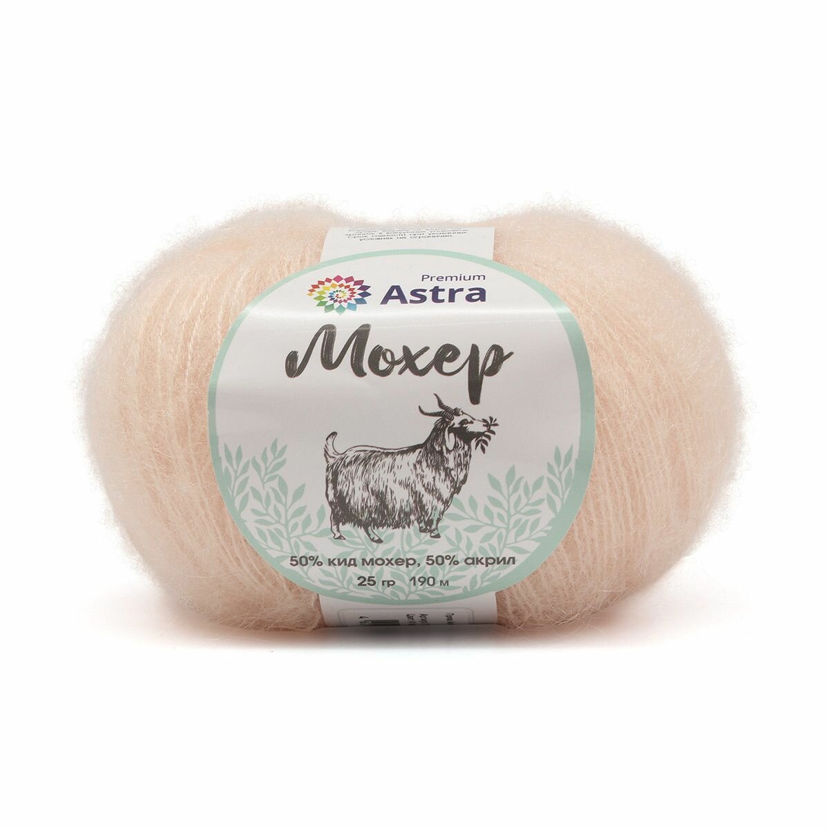 Пряжа для вязания Astra Premium 'Мохер' (Mohair), 25г, 190м (50% кид мохер, 50% акрил) (17 светлый беж), 4 мотка 1 030 ₽