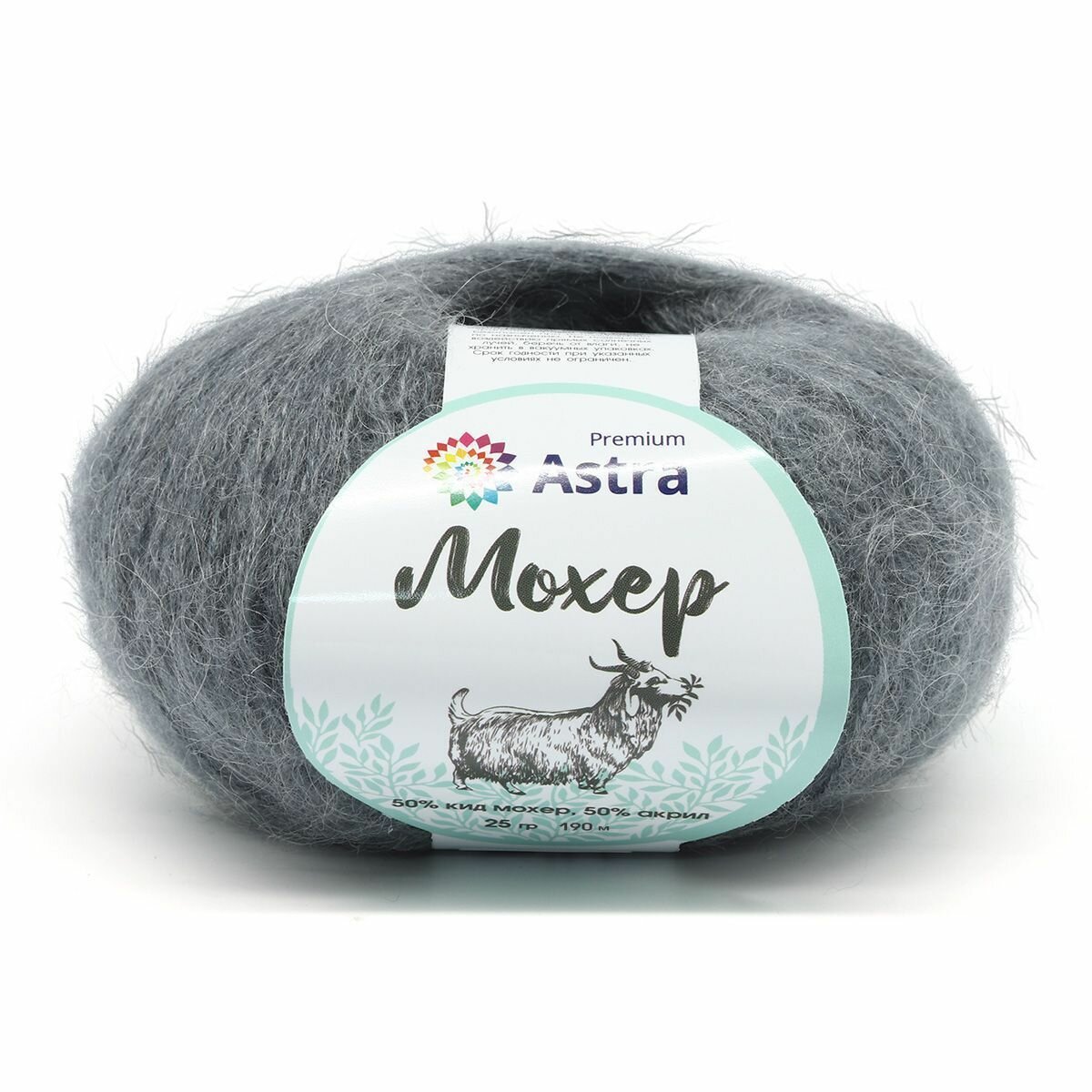 Пряжа для вязания Astra Premium 'Мохер' (Mohair), 25г, 190м (50% кид мохер, 50% акрил) (21 дымчато-серый), 4 мотка информация: