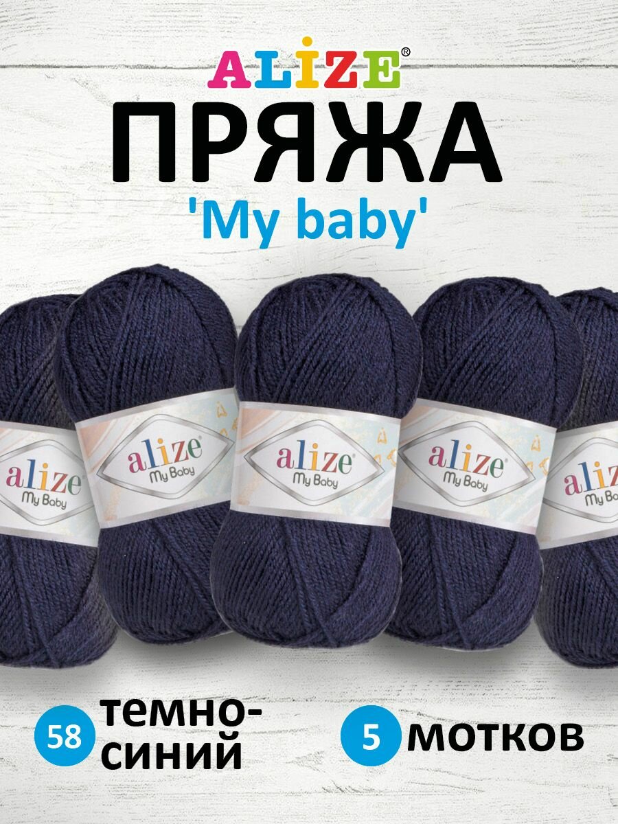 Пряжа для вязания ALIZE 'My baby', 50г, 150м (100% акрил) (58 тёмно-синий), 5 мотков информация: