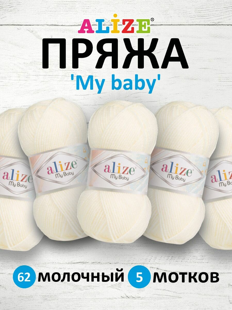 Пряжа MY BABY (Alize), молочный - 62, 100% акрил, 5 мотков, 50 г., 150 м. информация: