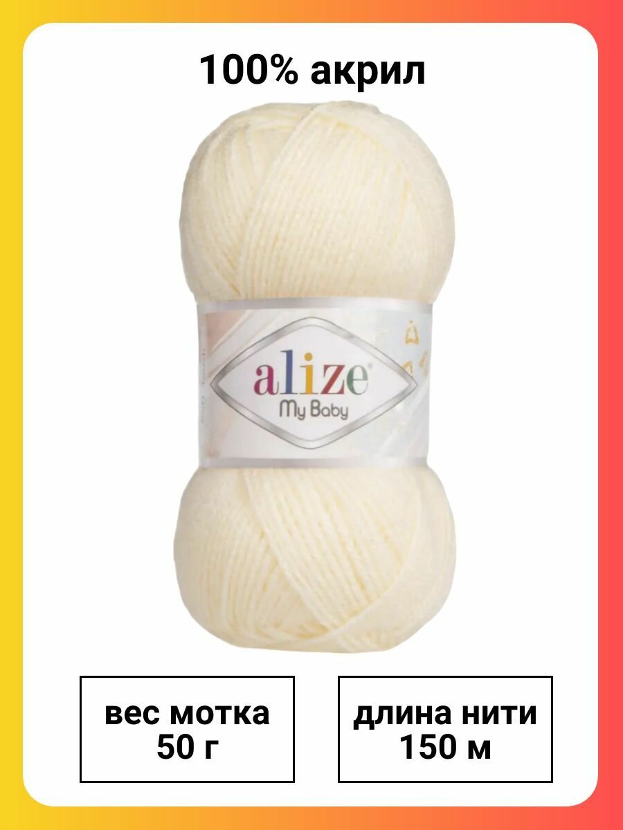 Пряжа MY BABY (Alize), слоновая кость - 599, 100% акрил, 5 мотков, 50 г, 150 м.