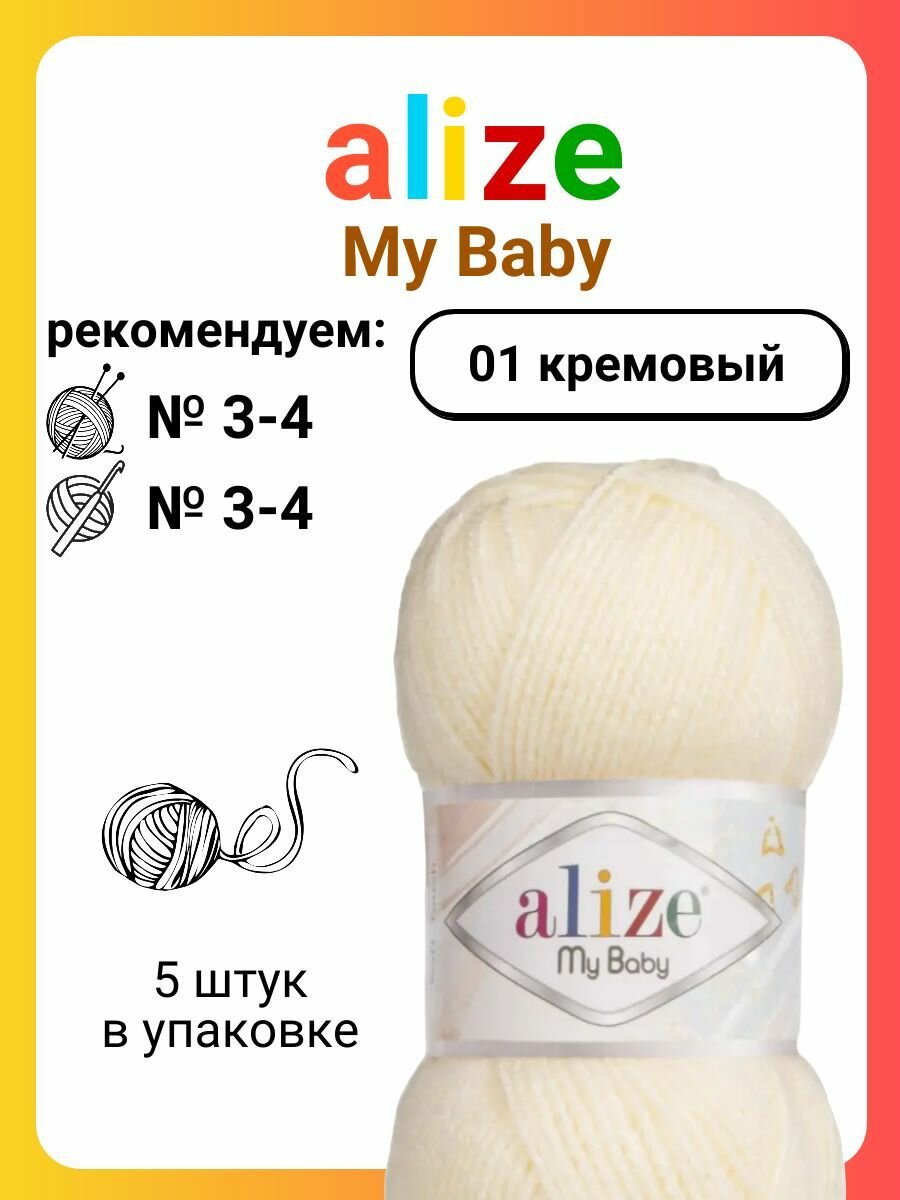 Пряжа Alize My Baby Ализе май беби Кремовый (01) 5 мотков 50 г/150 м (100% акрил) 659 ₽