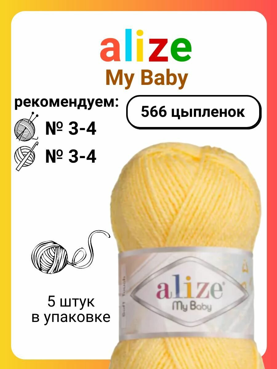 Пряжа MY BABY (Alize), цыпленок - 566, 100% акрил, 5 мотков, 50 г., 150 м. информация:
