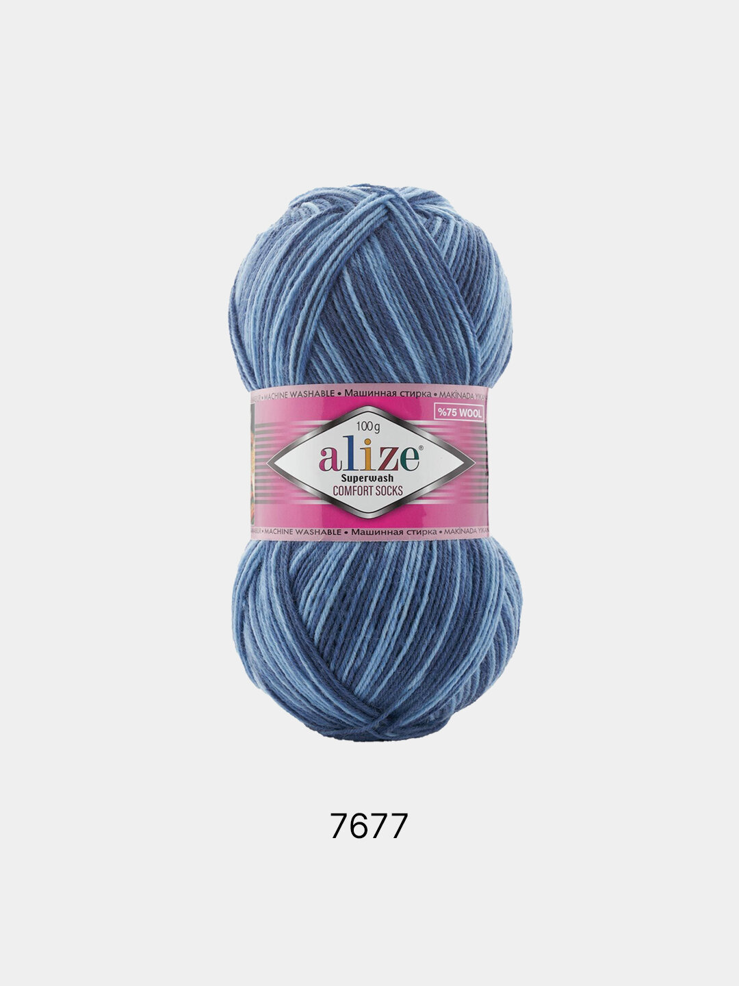 Пряжа Alize Superwash comfort socks голубой-серый-синий (7677), 75%шерсть/25%полиамид, 420м, 100г, 1шт