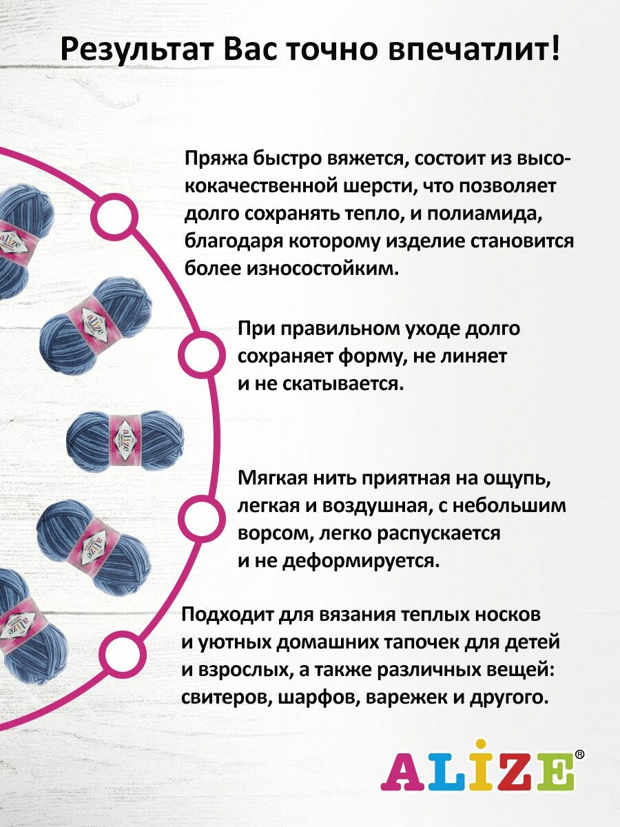 Пряжа Alize Superwash comfort socks голубой-серый-синий (7677), 75%шерсть/25%полиамид, 420м, 100г, 5шт информация: