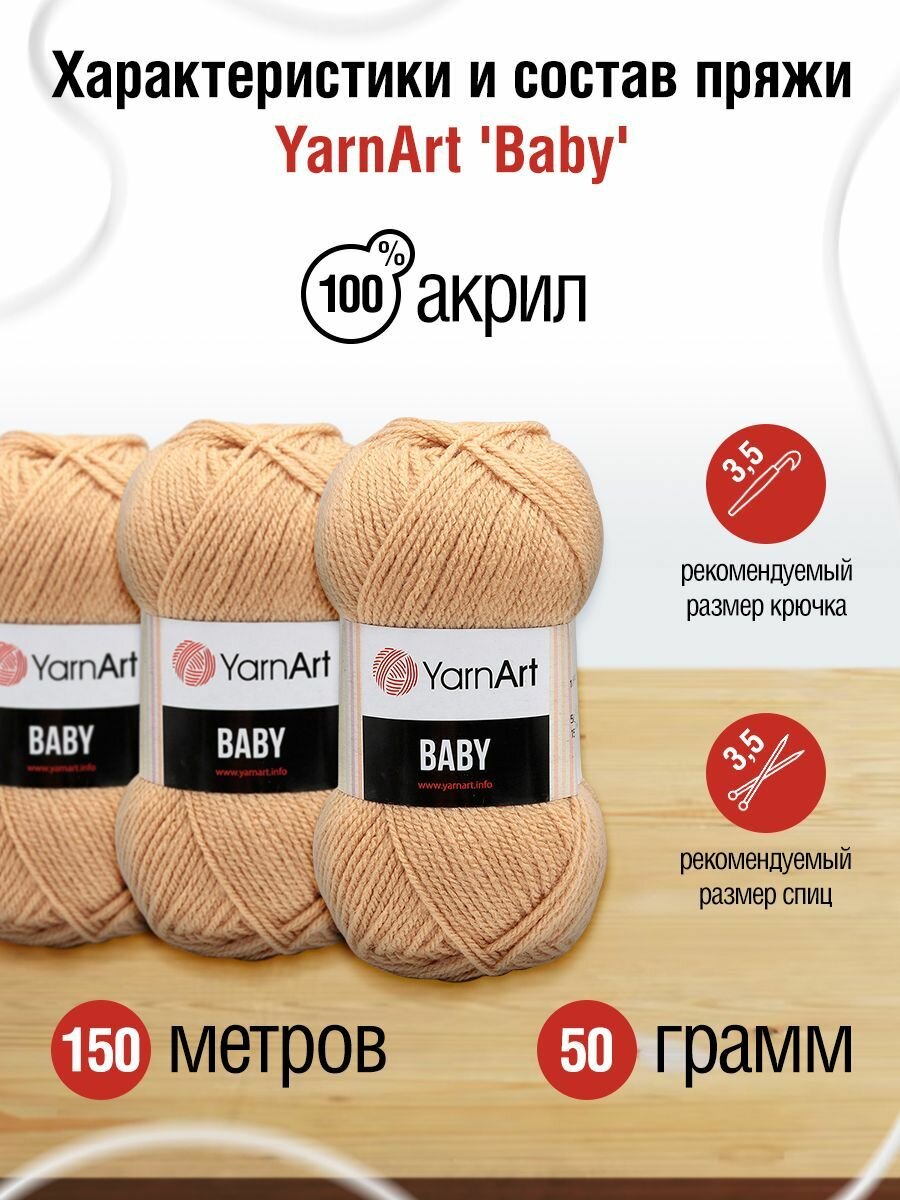 10 цен на Пряжа для вязания YarnArt Baby (ЯрнАрт Беби) - 5 мотков 805 бежевый, гипоаллергенная для детских изделий, 100% акрил, 150м/50г