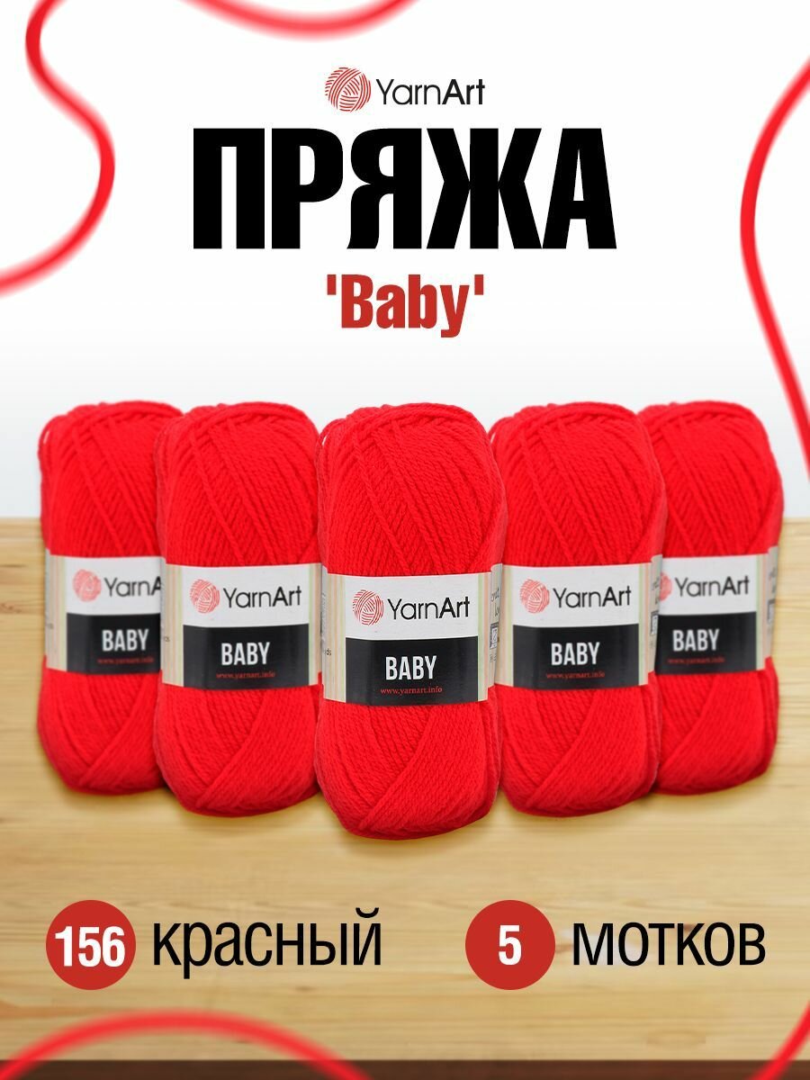 10 цен на Пряжа для вязания YarnArt 'Baby' 50г, 150м (100% акрил) (156 красный), 5 мотков