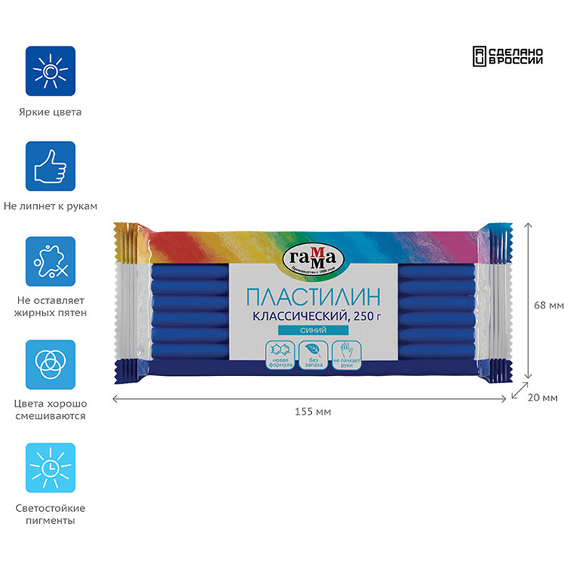 Пластилин Гамма "Классический", синий, 250г, 2шт информация: