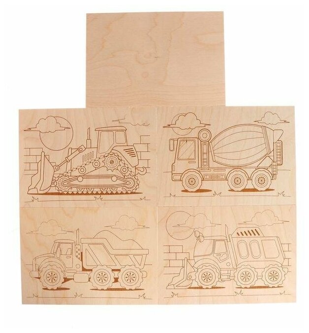 4шт Заготовки деревянные для выжигания "Сказочные мотивы",