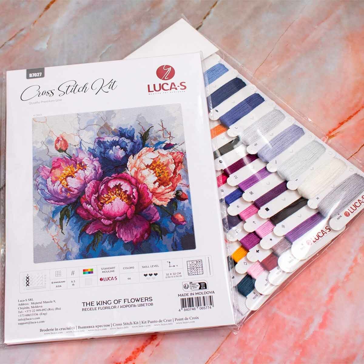 Набор для вышивания крестом Король цветов арт. В7027 Luca-S 32x32 см / Пионы информация:
