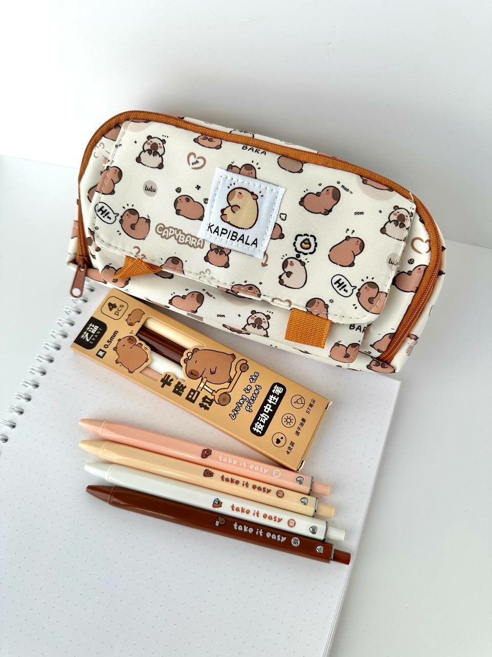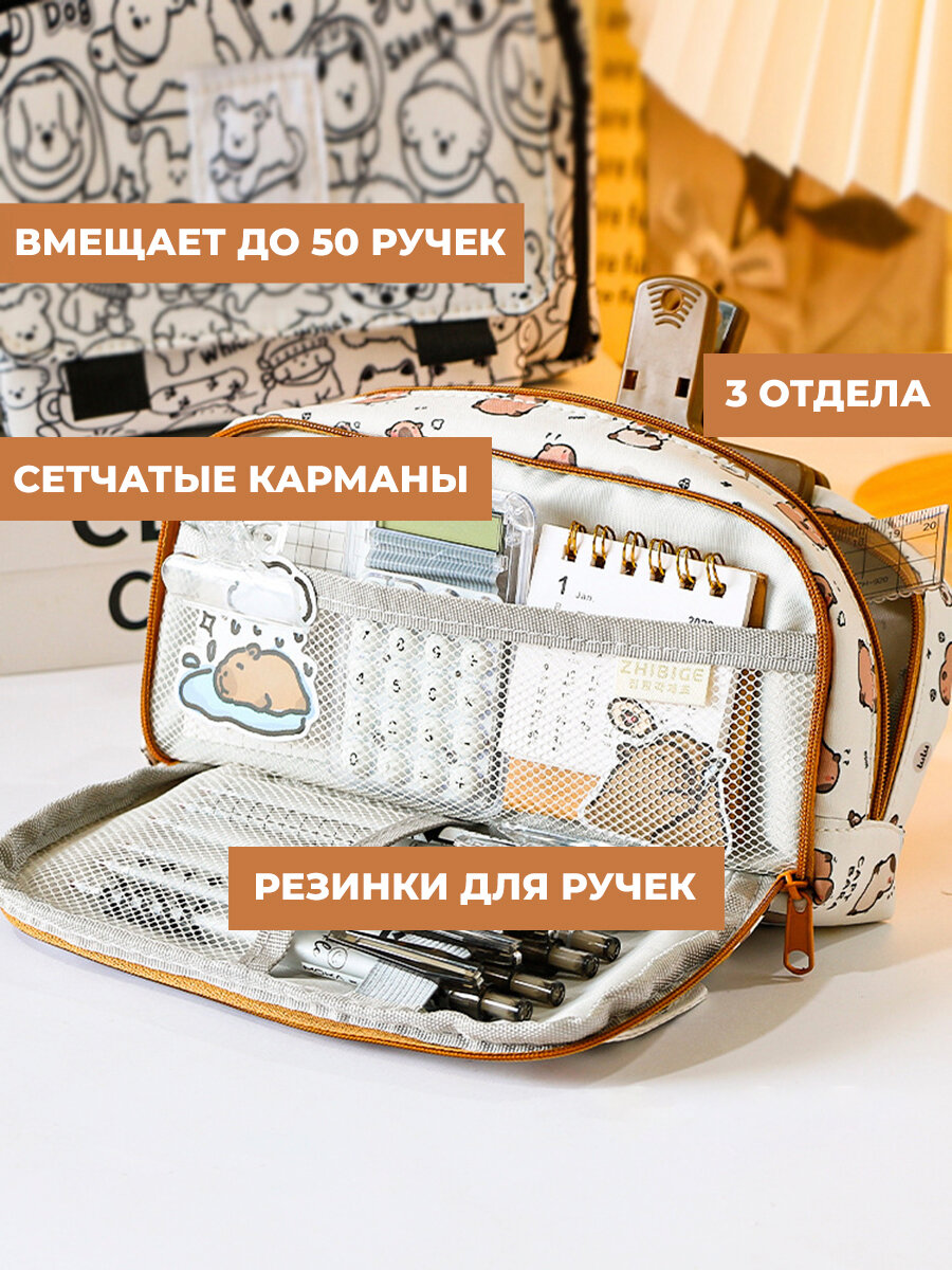 10 цен на Школьный детский пенал для подростков с капибарой - Эстетичный канцелярский органайзер, белый, ручки в подарок