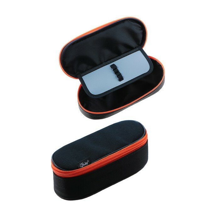 10 цен на Пенал-футляр 85 х 210 х 50 мм с откидной планкой, мягкий, текстильный, Оникс, ПМК 24-42 Black, чёрный/ярко-оранжевый
