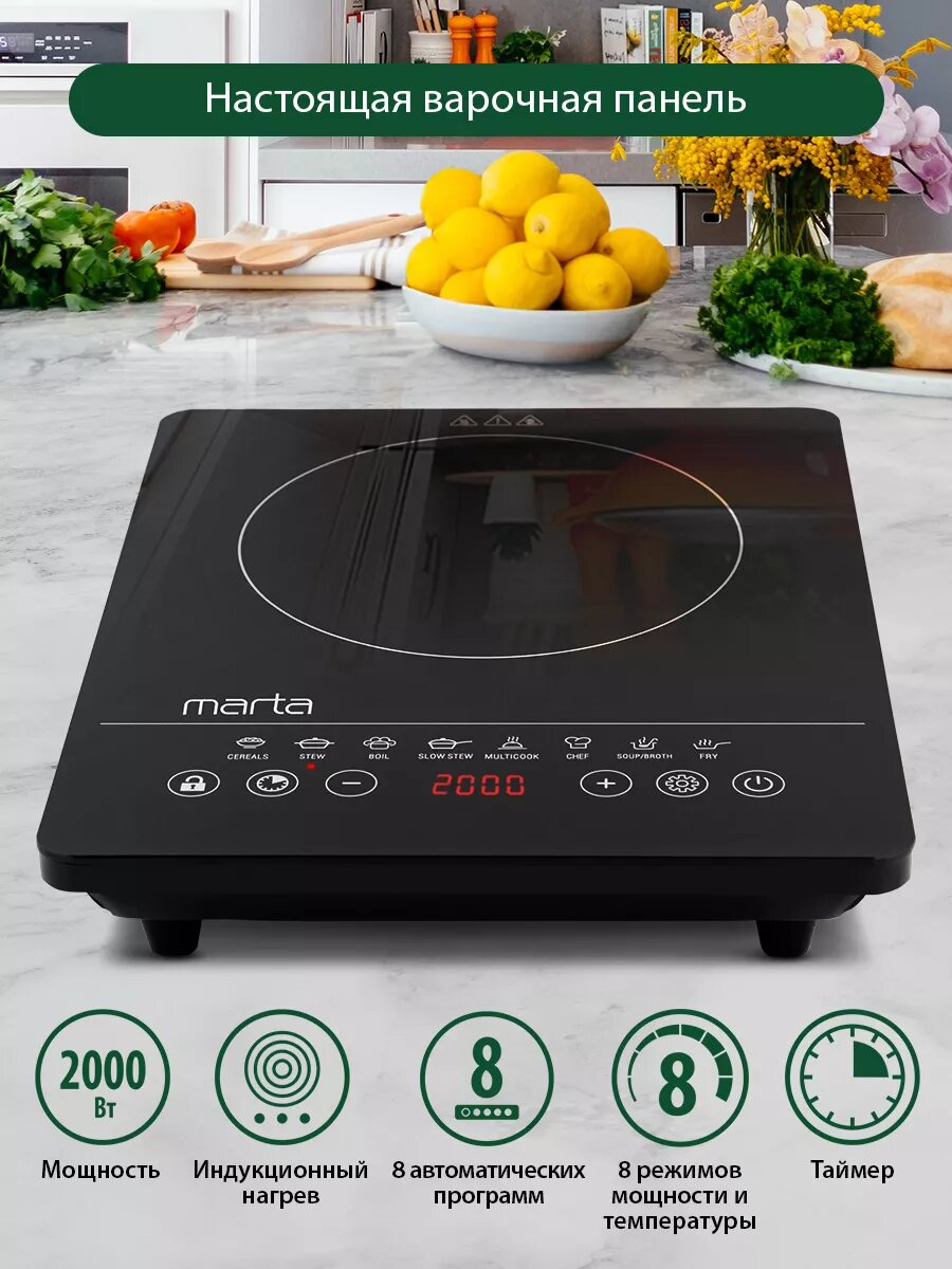 Плита индукционная электрическая MARTA MT-HP4223C безимпульсная черный жемчуг