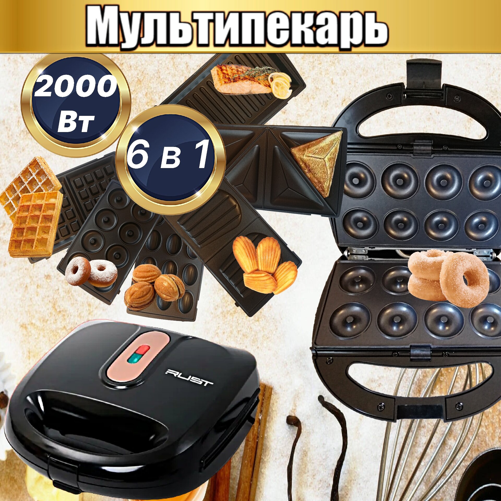 Отзывы на Мультипекарь вафельница-орешница электрическая 2000Вт, 6 пар сменных панелей для выпечки