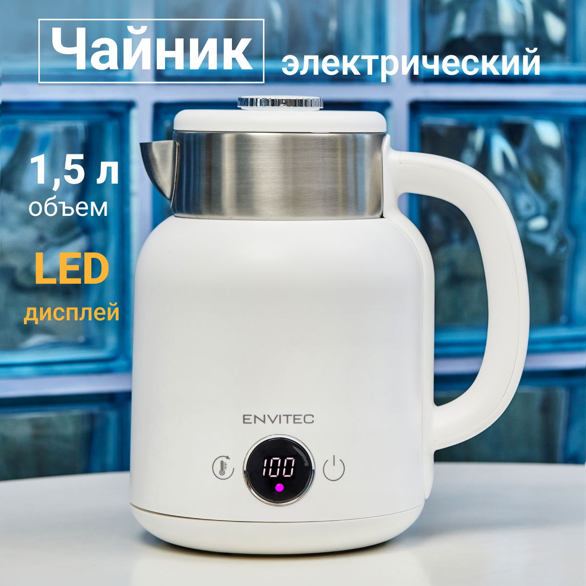10 цен на Чайник электрический Envitec EK-1300 белый с регулировкой температуры