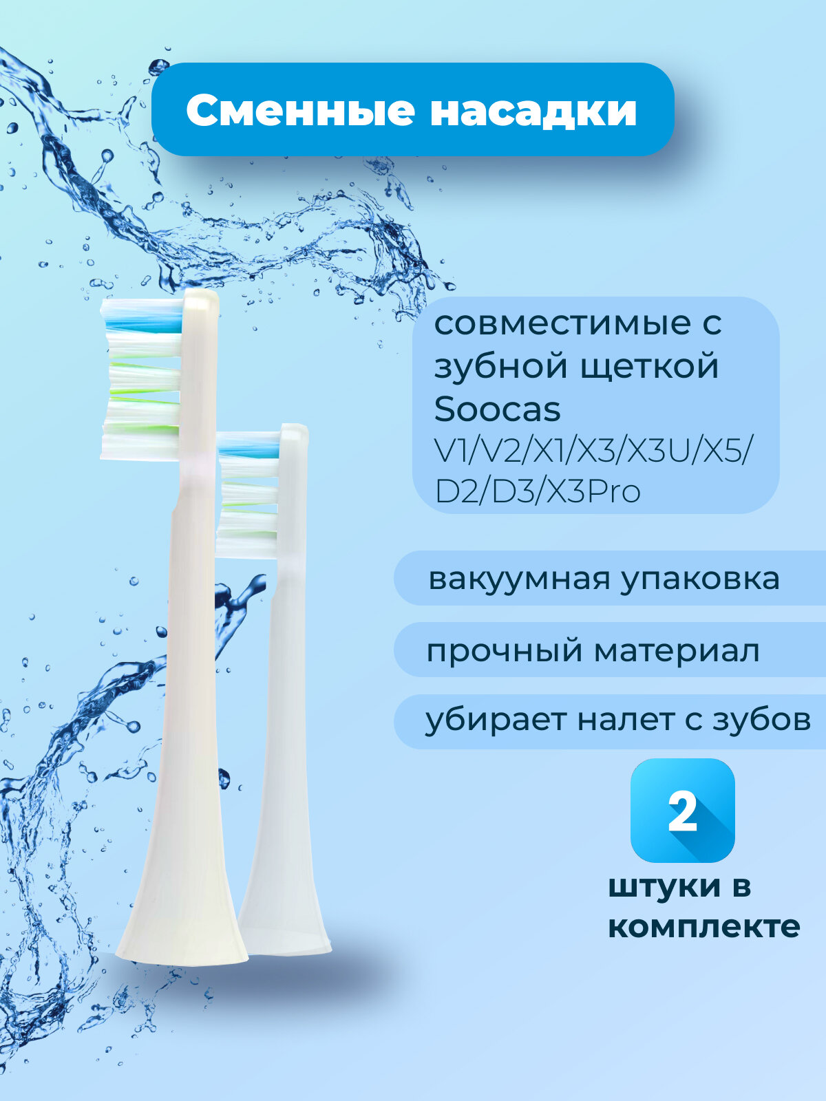 Сменные насадки для зубной щетки Soocas V1/V2/X1/X3/X3U/X5/D2/D3/X3Pro белый, 2шт информация: