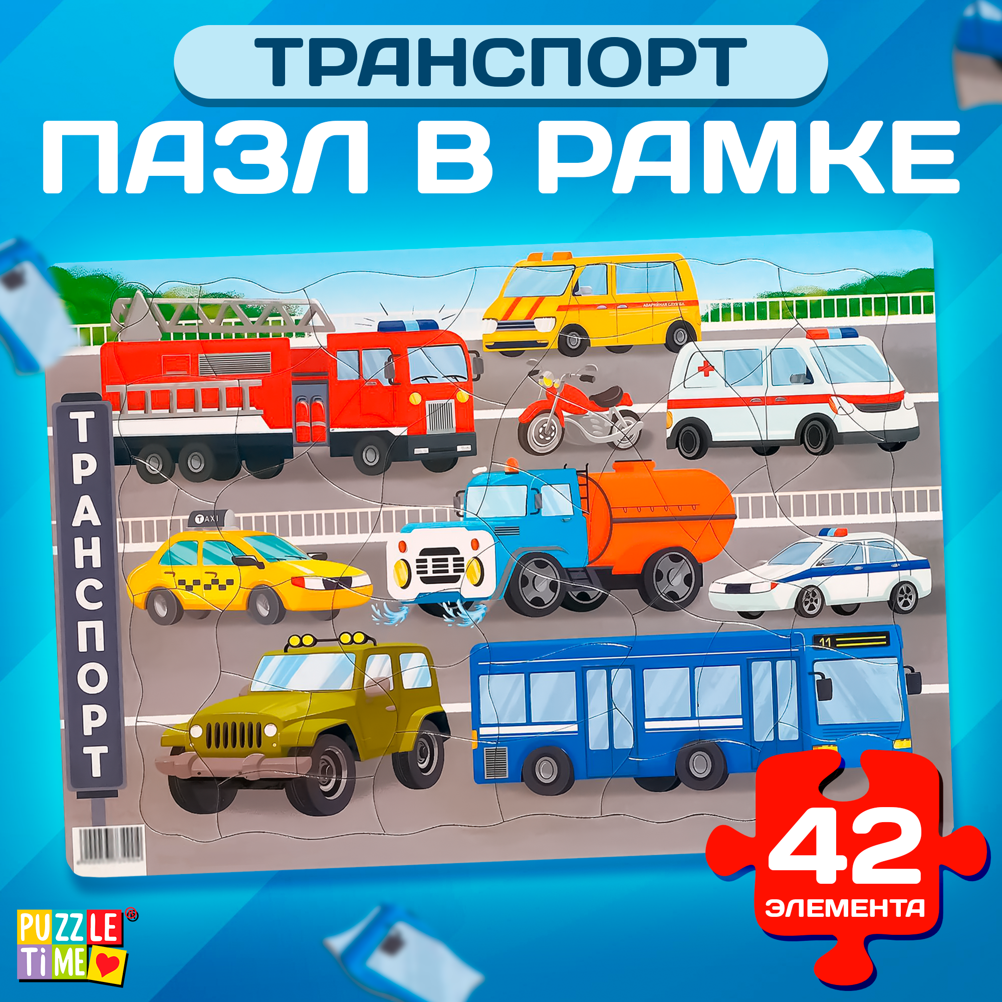 Пазл в рамке "Транспорт", 42 детали, рамка-вкладыш, развивающий, для детей и малышей информация: