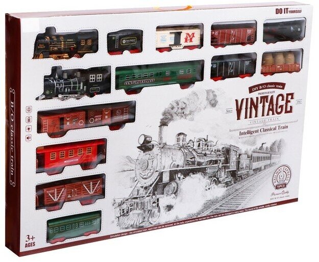 10 цен на Железная дорога игрушечная КНР "Винтаж", 2 состава в комплекте, свет и звук, работает от батареек (8299-99)