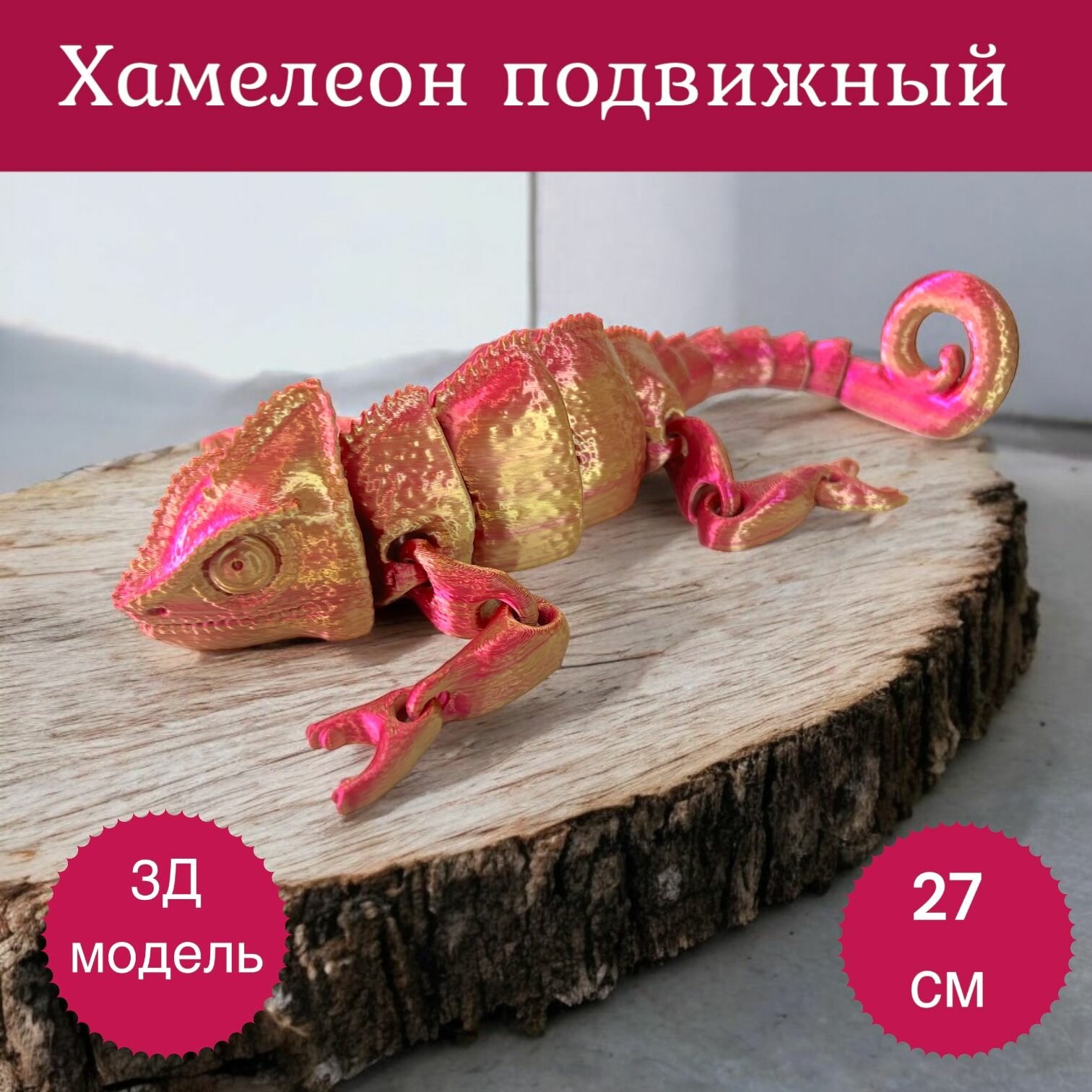 Хамелеон подвижная фигурка металлик 24 см красно золотой информация: