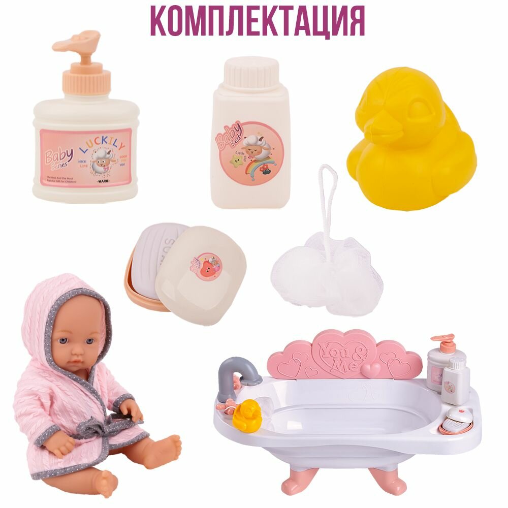 Набор кукла пупс с ванночкой и аксессуарами, 30см информация: