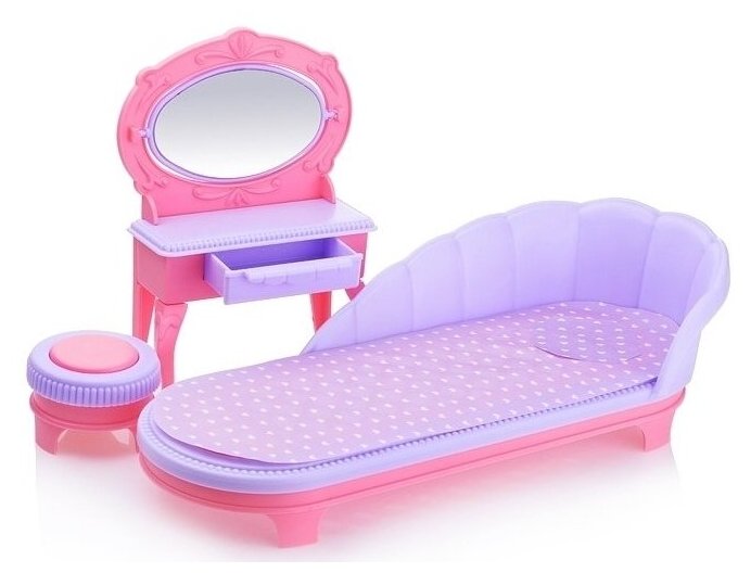 Набор мебели для кукол "Будуар"Маленькая принцесса" (трюмо, тахта, пуф), цвет: розовый