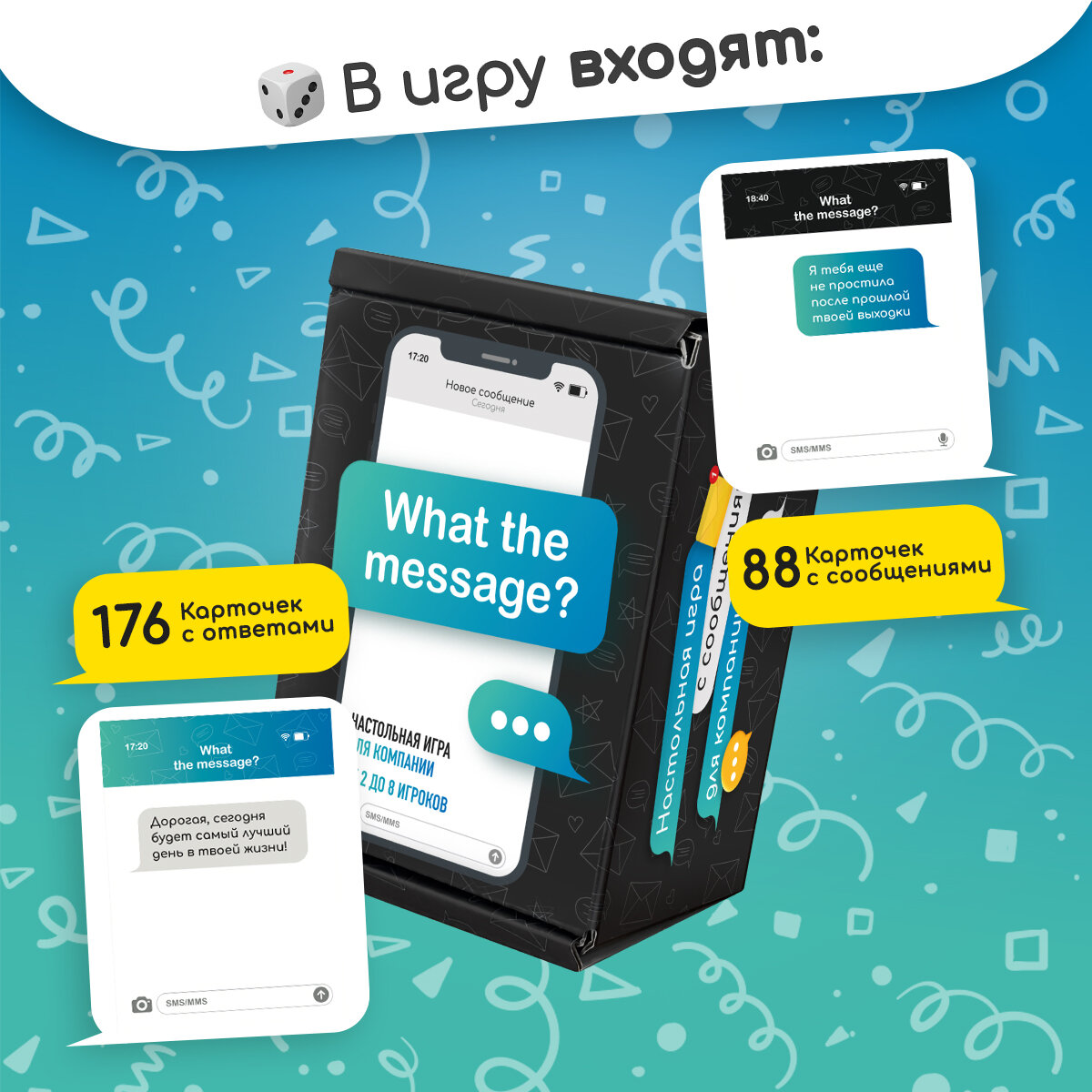 Настольная игра "What the message?" в сообщения для детей от 16 лет и взрослых, на вечеринку, день рождения и подарок. 264 карточки информация: