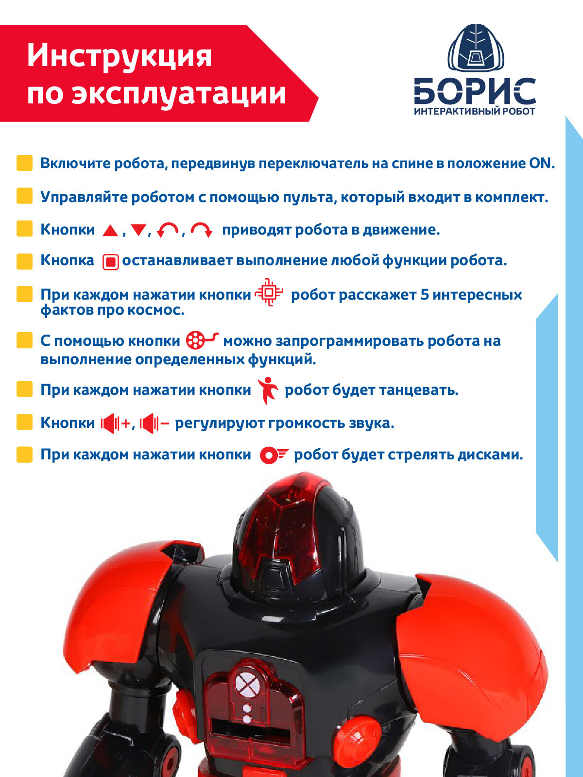 Интерактивный робот на радиоуправлении Борис ТМ Джамбо Тойз, ходит, танцует, обучает интересным фактам о космосе, стреляет дисками, свет/звук информация: